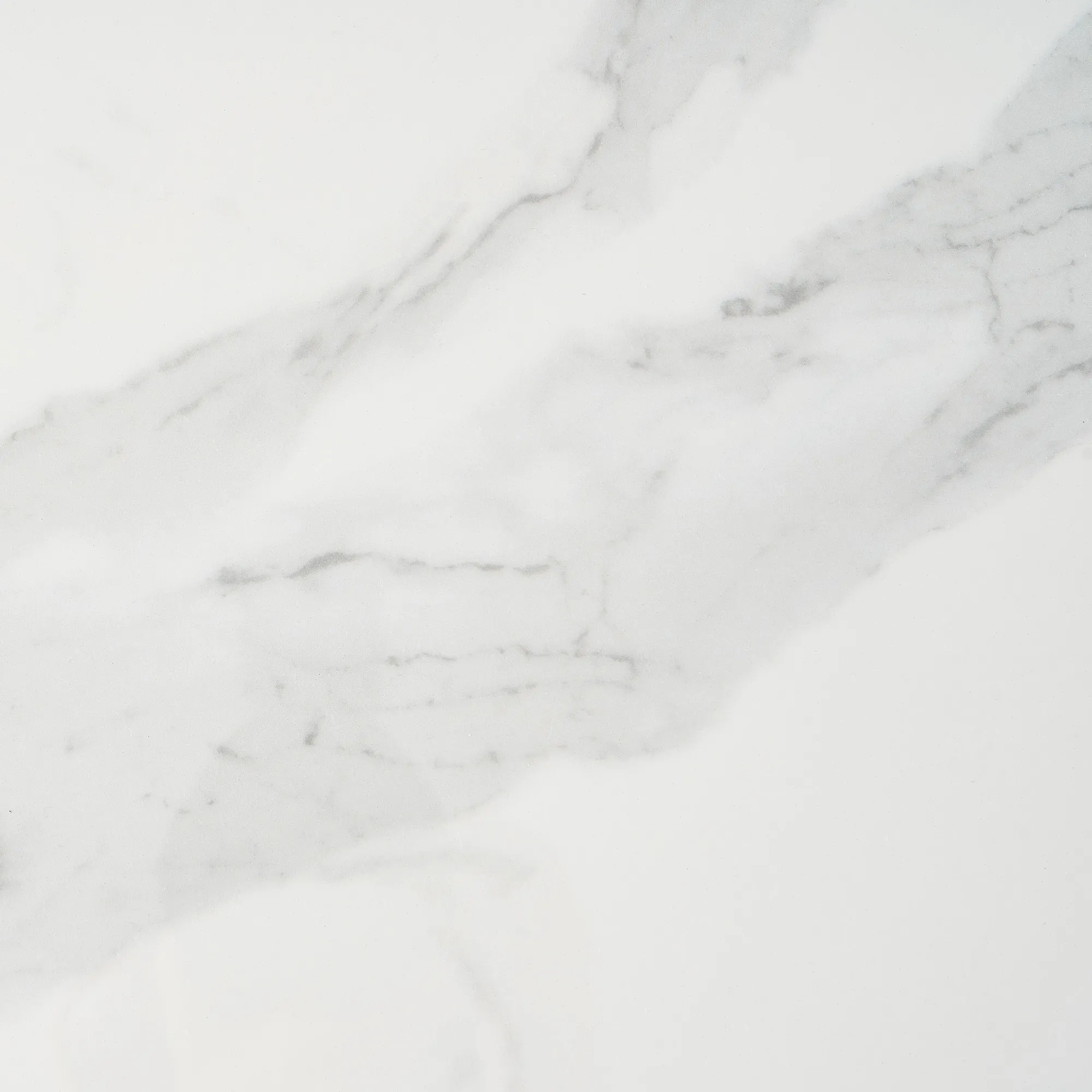 The Archie White Sintered Stone Round Coffee Table pays homage to the art-deco era with a pristine white sintered stone top featuring subtle marbled veining. Its stainless steel base, adorned with vertical reeding, captures the geometric elegance of the 1920s.