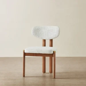 Wrapped in soft Murmur White fabric, the Portobello Dining Chair offers a comfortable seat designed for long, relaxed dining.