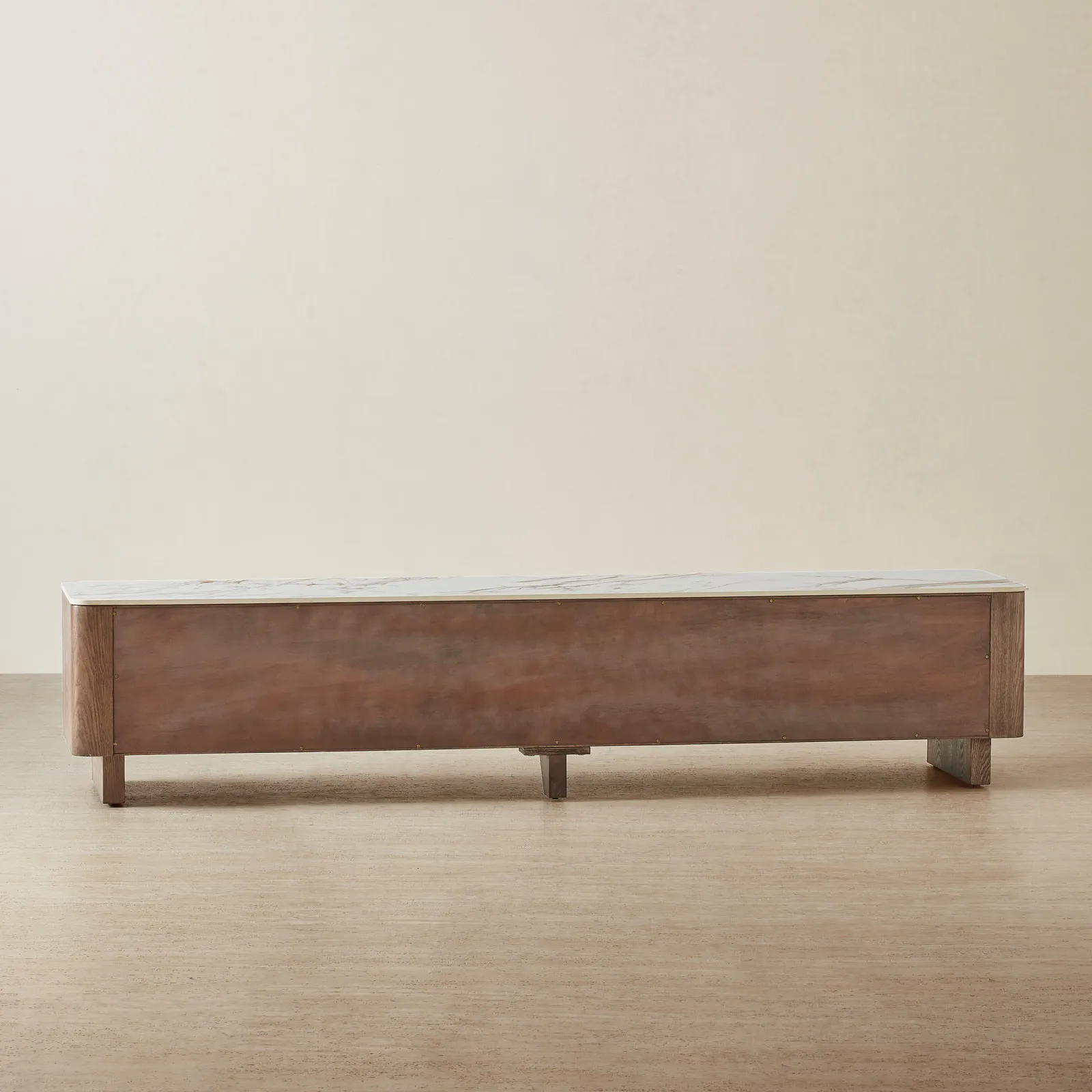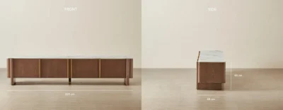 Crowned with a white sintered stone top, the Sir Lionell Entertainment Unit offers a sleek, durable surface ideal for screens, speakers, and décor.