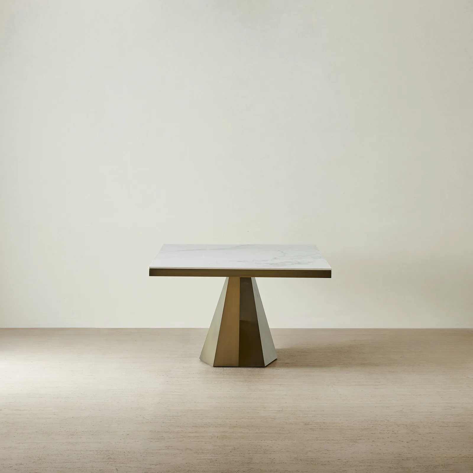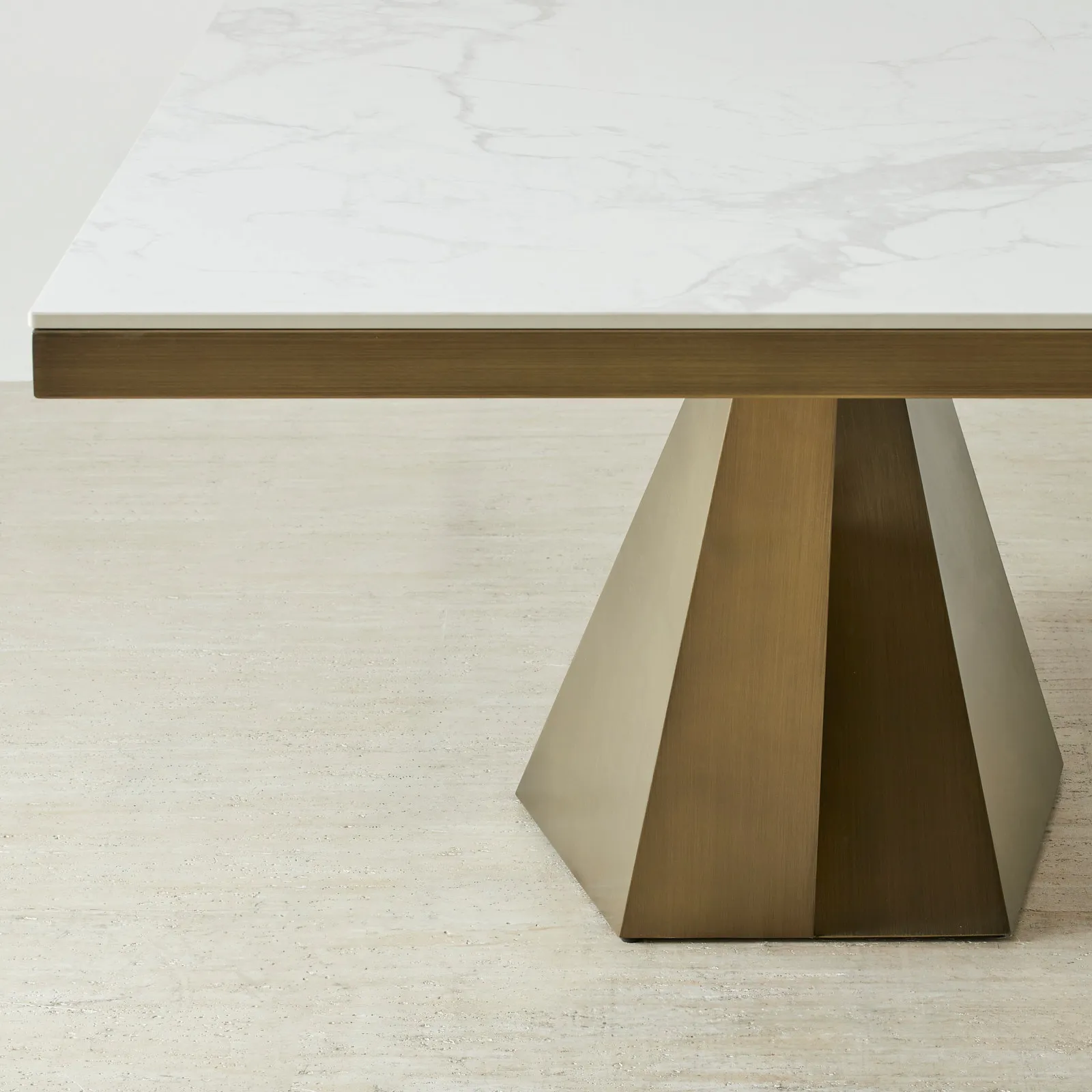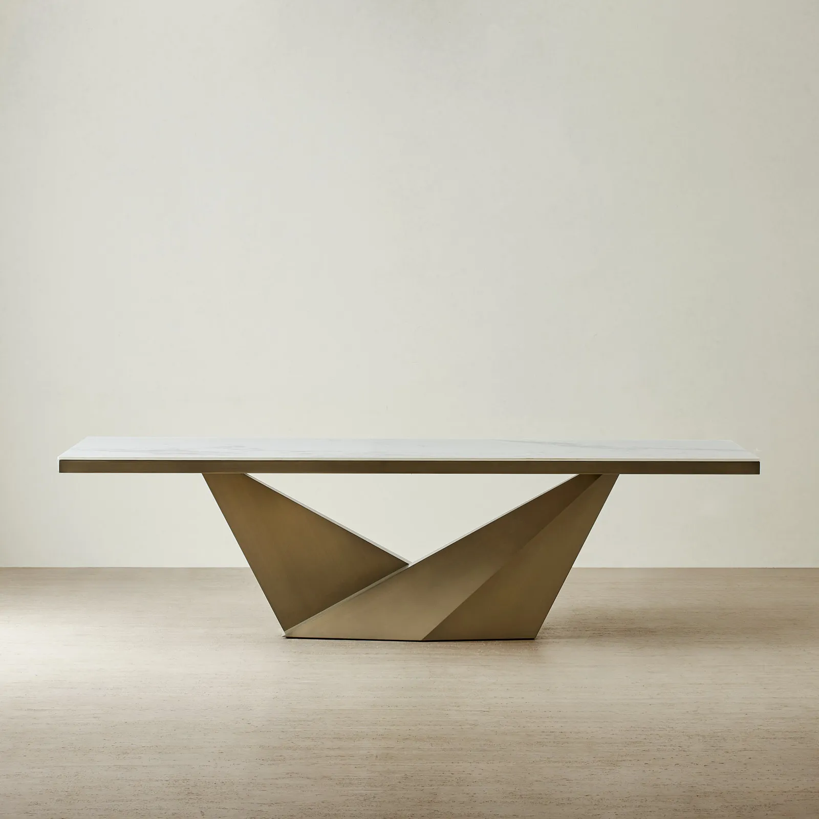 Its striking brushed bronze base, sculpted with sharp geometric lines, creates a bold architectural silhouette. With its commanding presence and luxurious finishes, Vania is a statement in sophisticated dining.
